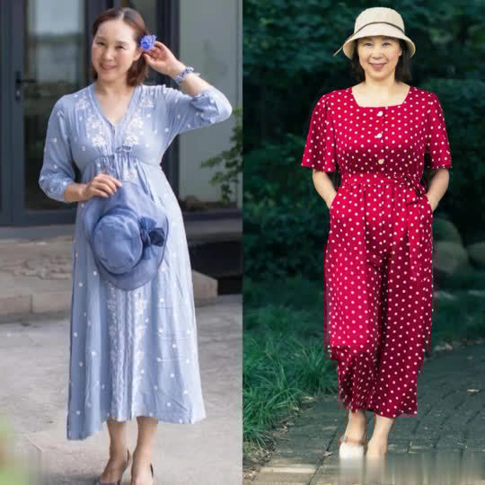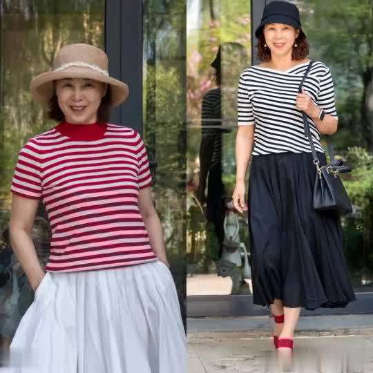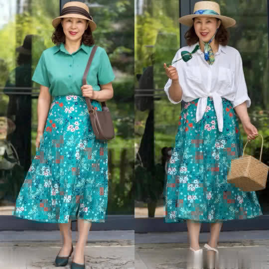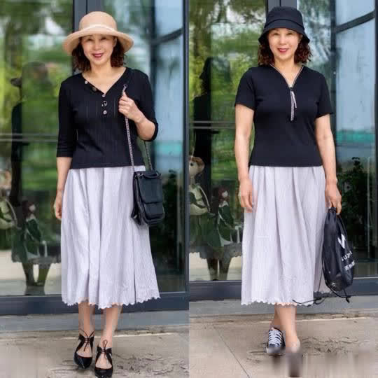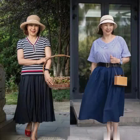 这种搭配方式对于梨形身材或是微胖的成熟女性而言,无疑是一种极为友好的选择。