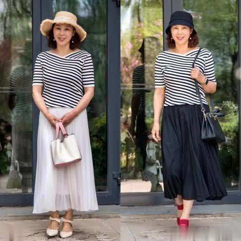 像这种黑白色的条纹就能够体现出更时尚的风格,配上一条长裙,也可以很好地营造出温柔大方气质。